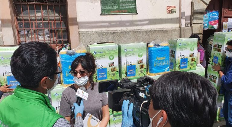 Centros penitenciarios de todo el país contarán con mochilas fumigadoras para prevenir la propagación del COVID-19 gracias a la donación de Progettomondo.mlal y recursos de la Agencias de Cooperación Italiana en Bolivia AICS.